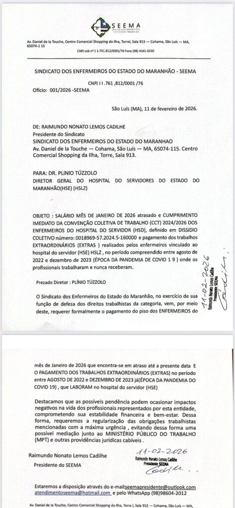 Enquanto os tubos de dinheiro para o carnaval são tratados como prioridade, os enfermeiros do Hospital do Servidor, que são vinculados ao Instituto de Apoio ao Desenvolvimento da Vida Humana (IADVH), são deixados de lado, com o salário de janeiro de 2026 atrasado. O sindicato que representa a categoria encaminhou ofício à diretoria-geral do Hospital dos Servidores do Estado do Maranhão, destacando que as pendências podem ocasionar impactos negativos na vida dos profissionais, comprometendo a estabilidade financeira, e que o caso poderá ser levado ao Ministério Público do Trabalho.